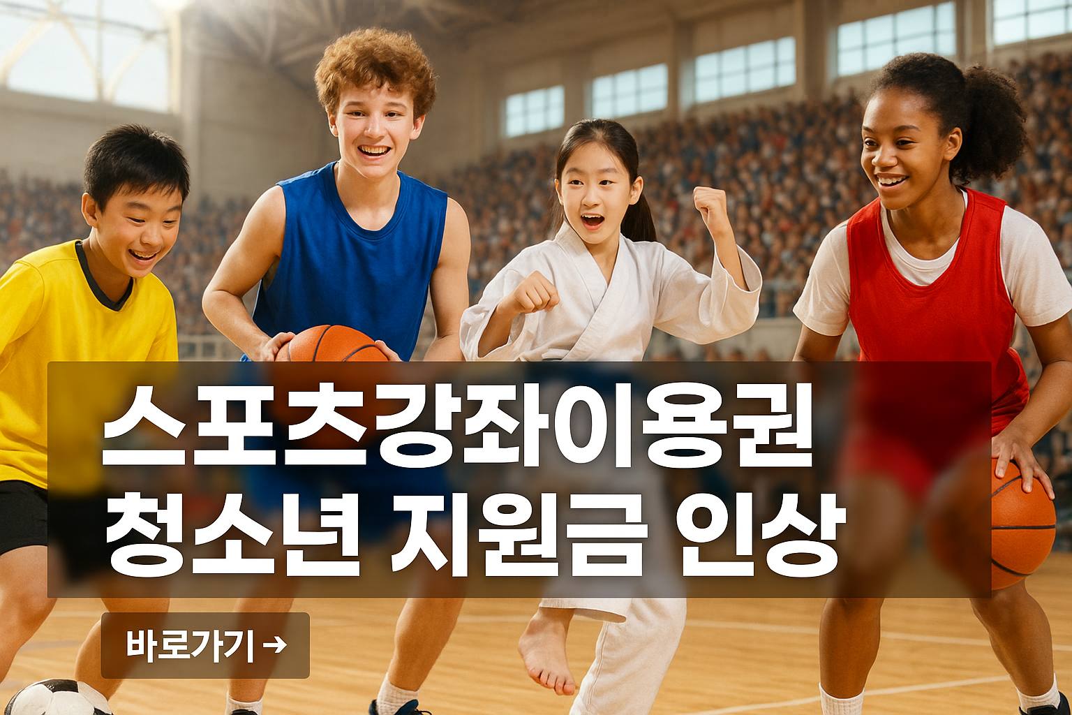 성장기 아이들의 건강한 발달을 위해 스포츠 활동은 필수적이지만, 수강료 부담으로 망설였던 가정이 많았을 텐데요. 반가운 소식입니다! 저소득층 유·청소년의 스포츠 활동을 지원하는 '스포츠강좌이용권'의 정부 지원금이 인상되어 더 많은 아이들이 스포츠를 즐길 수 있게 되었습니다. 이번 지원 확대로 우리 아이들의 몸과 마음이 더욱 건강하게 성장할 기회가 넓어졌습니다.