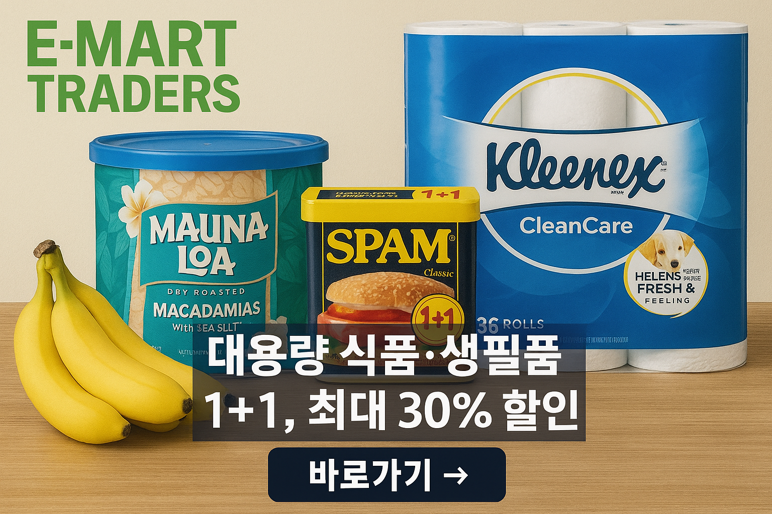 이마트 트레이더스, 대용량 상품 1+1 & 최대 30% 할인! 알뜰 쇼핑 찬스!
