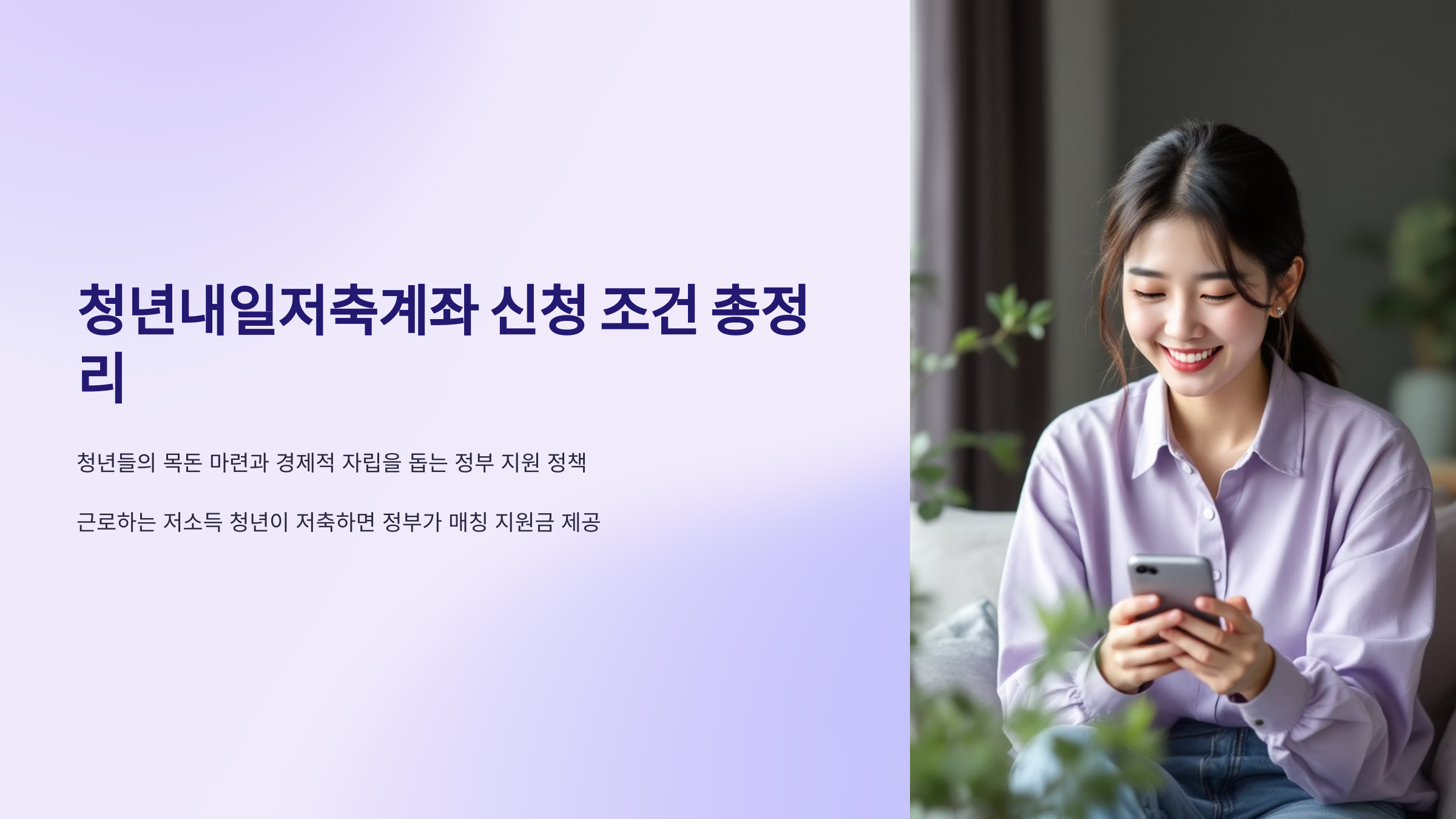 사회에 첫발을 내딛는 청년들에게 '목돈 마련'은 늘 어려운 숙제입니다. 학자금 대출 상환, 주거비 부담, 불안정한 고용 환경 등은 청년들이 안정적인 자산을 형성하는 데 큰 걸림돌이 되곤 합니다. 이러한 청년들의 어려움을 덜어주고, 경제적 자립을 돕기 위해 정부에서는 다양한 지원 정책을 시행하고 있는데요. 그중에서도 '청년내일저축계좌'는 근로하는 저소득 청년이 꾸준히 저축하면 정부가 매칭 지원금을 더해 목돈 마련을 돕는 매력적인 제도입니다. "혹시 나도 이 좋은 혜택을 받을 수 있을까?" 궁금해하는 분들을 위해, 지금부터 청년내일저축계좌의 신청 조건과 핵심 내용을 꼼꼼하게 총정리해 드리겠습니다.