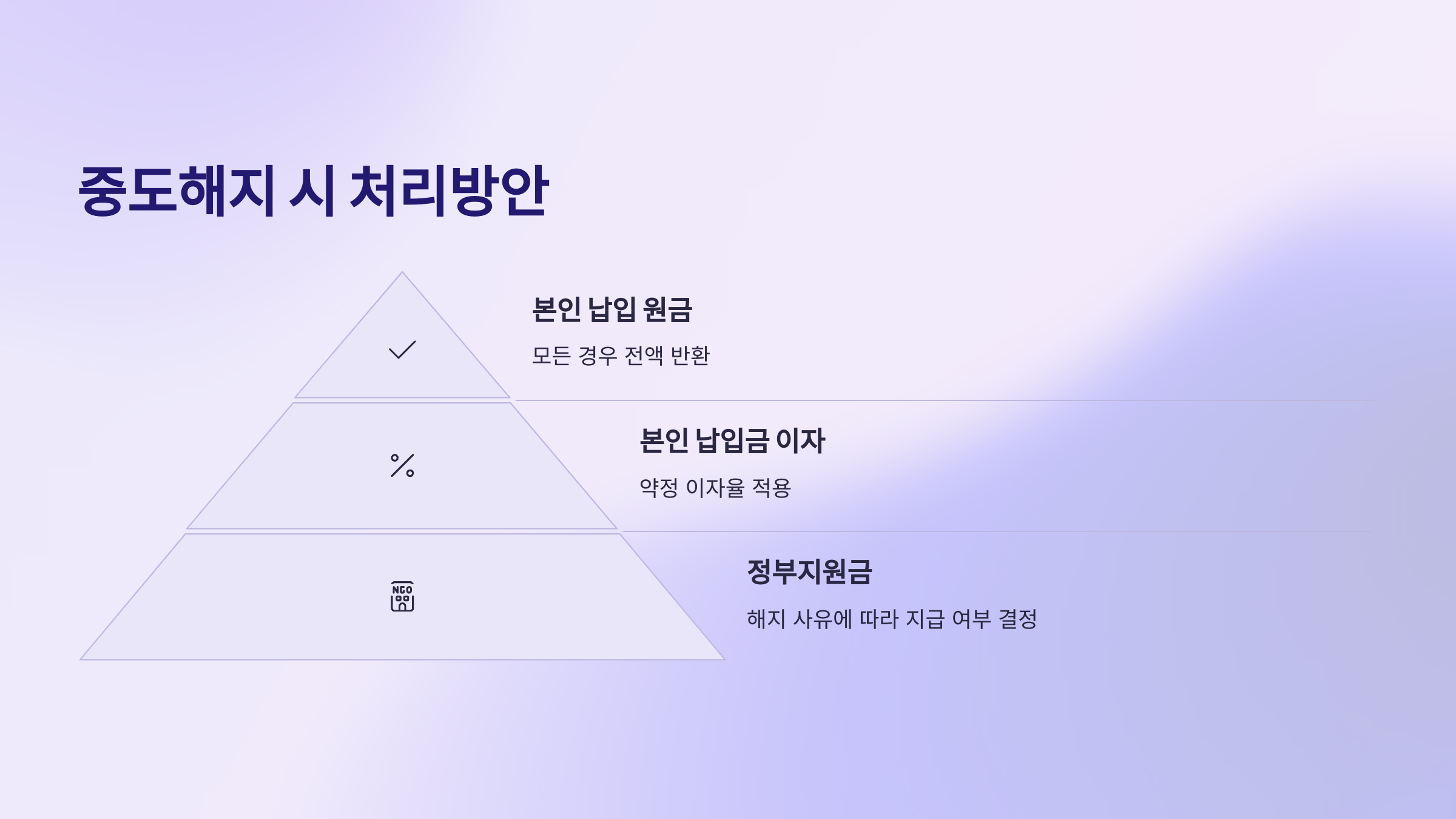 - 본인 납입 원금: 어떤 사유로 해지하든 본인이 직접 납입한 원금은 전액 돌려받을 수 있습니다. 이는 당연한 권리입니다.