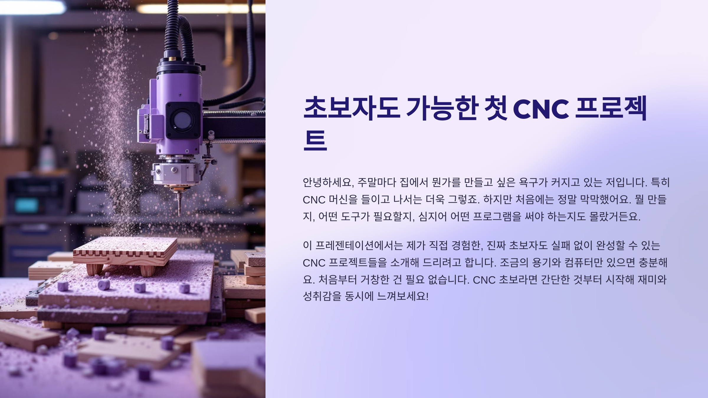 안녕하세요, 요즘 주말마다 집에서 뭔가를 만들고 싶은 욕구가 점점 커지고 있는 저예요. 특히 CNC 머신을 하나 들이고 나서는 더더욱요. 근데 솔직히 처음엔 막막했거든요. 뭘 만들지, 어떤 도구가 필요할지, 심지어 프로그램은 뭘 써야 하는지도 하나도 몰랐어요. 그래서 제가 직접 경험한, 진짜 초보자도 실패 없이 완성할 수 있는 CNC 프로젝트들을 소개해보려고 해요. 조금의 용기와 컴퓨터만 있으면 충분하답니다. 진짜로요.