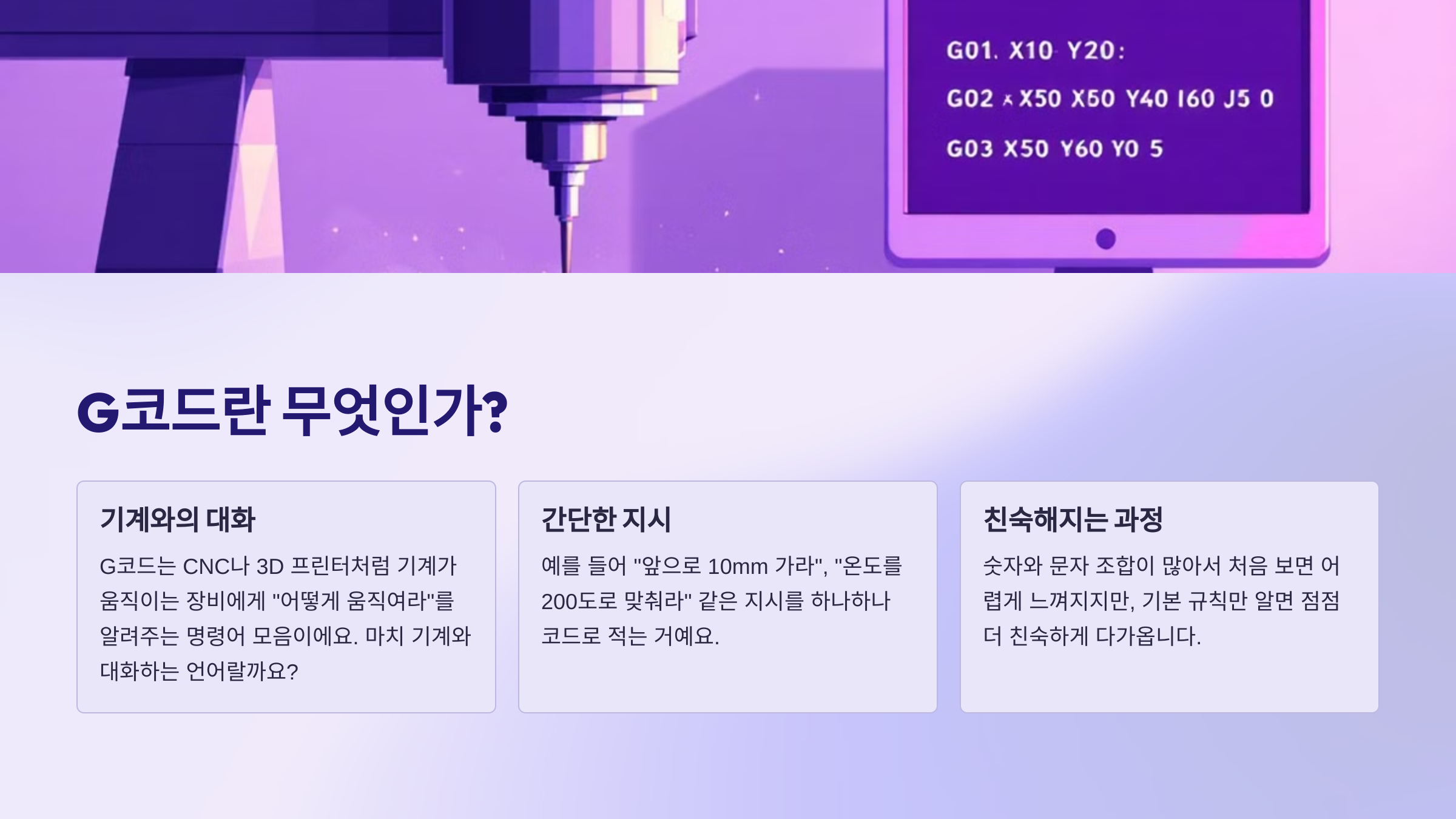 여러분, G코드가 뭐길래 그렇게들 어려워하는 걸까요? 생각보다 쉽고 재밌는 세계랍니다!