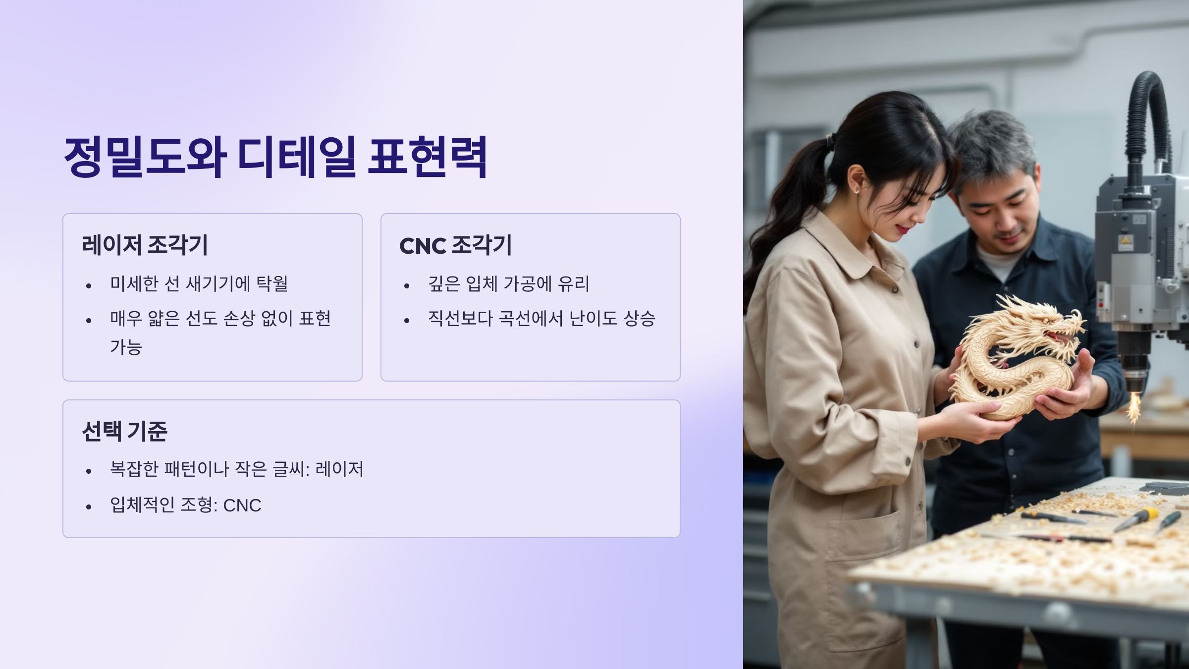 | 항목 | CNC 조각기 | 레이저 조각기 |