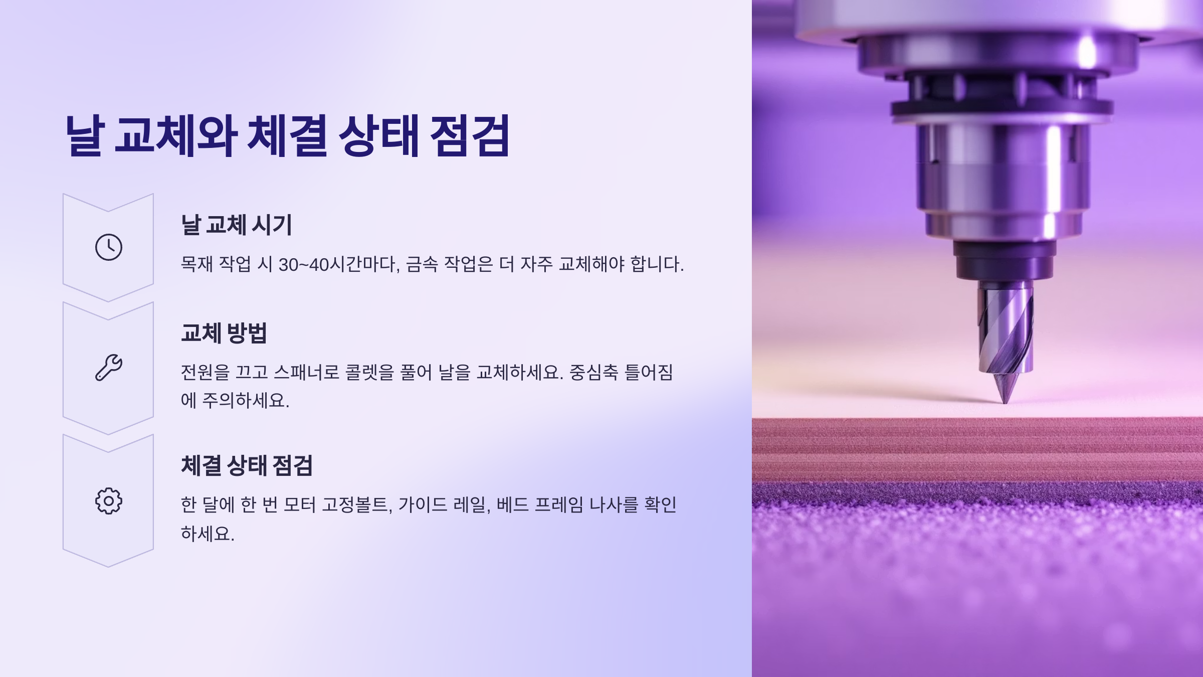 CNC 조각기 유지보수, 날 교체부터 청소까지