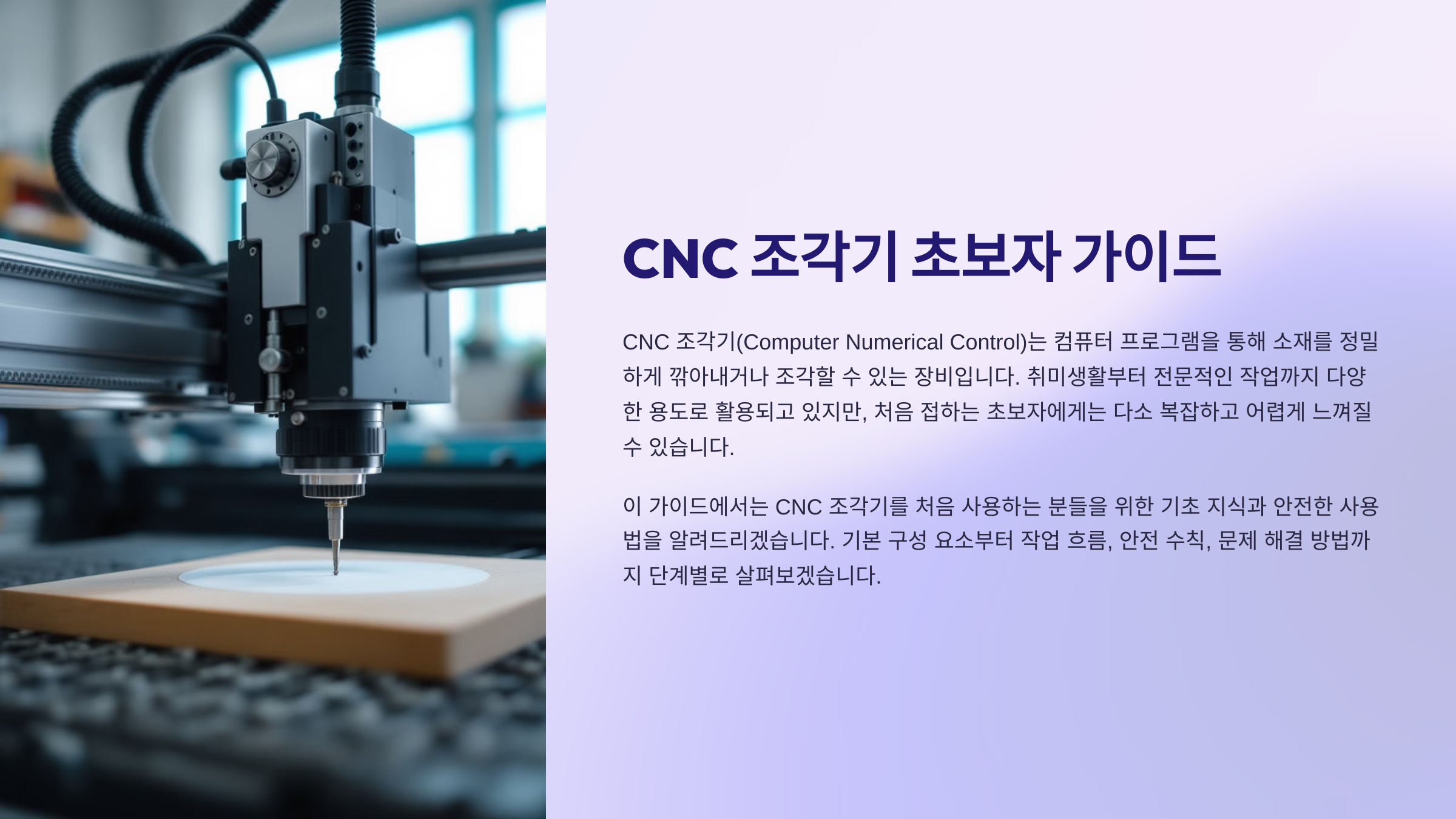 CNC 조각기(Computer Numerical Control)는 컴퓨터 프로그램을 통해 소재를 정밀하게 깎아내거나 조각할 수 있는 장비입니다. 취미생활부터 전문적인 작업까지 다양한 용도로 활용되고 있지만, 처음 접하는 초보자에게는 다소 복잡하고 어렵게 느껴질 수 있습니다. 이 글에서는 CNC 조각기를 처음 사용하는 분들을 위한 기초 지식과 안전한 사용법을 알려드리겠습니다.