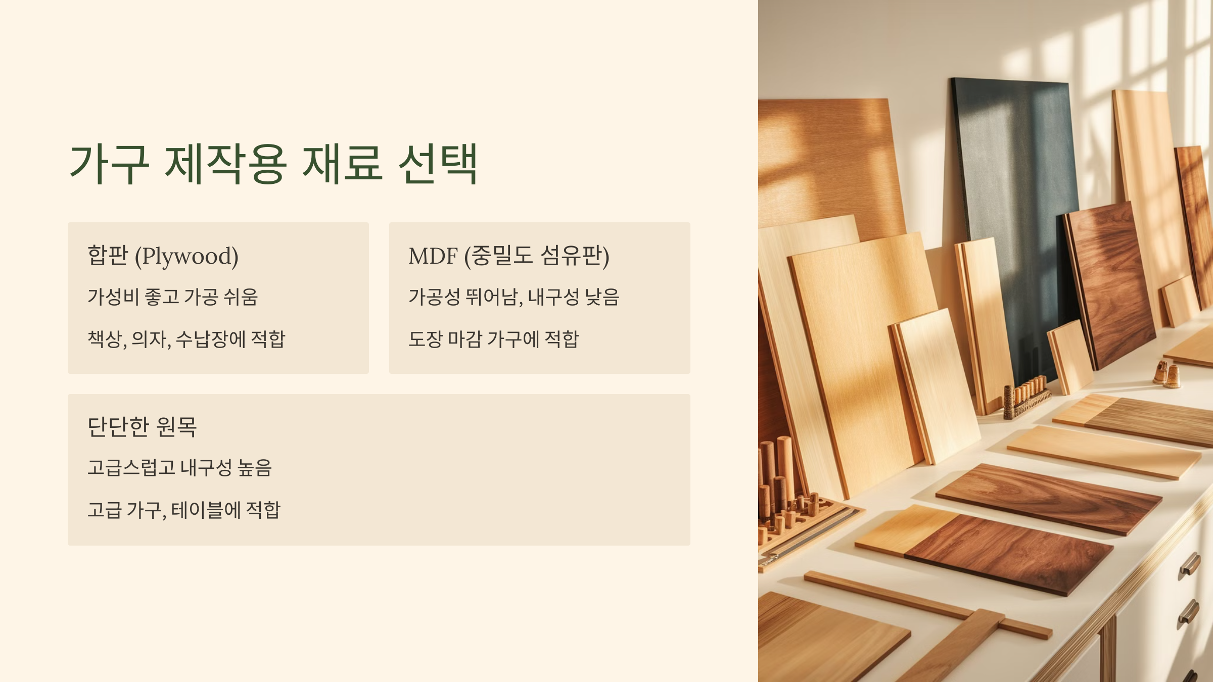 가구 제작에 적합한 재료 선택