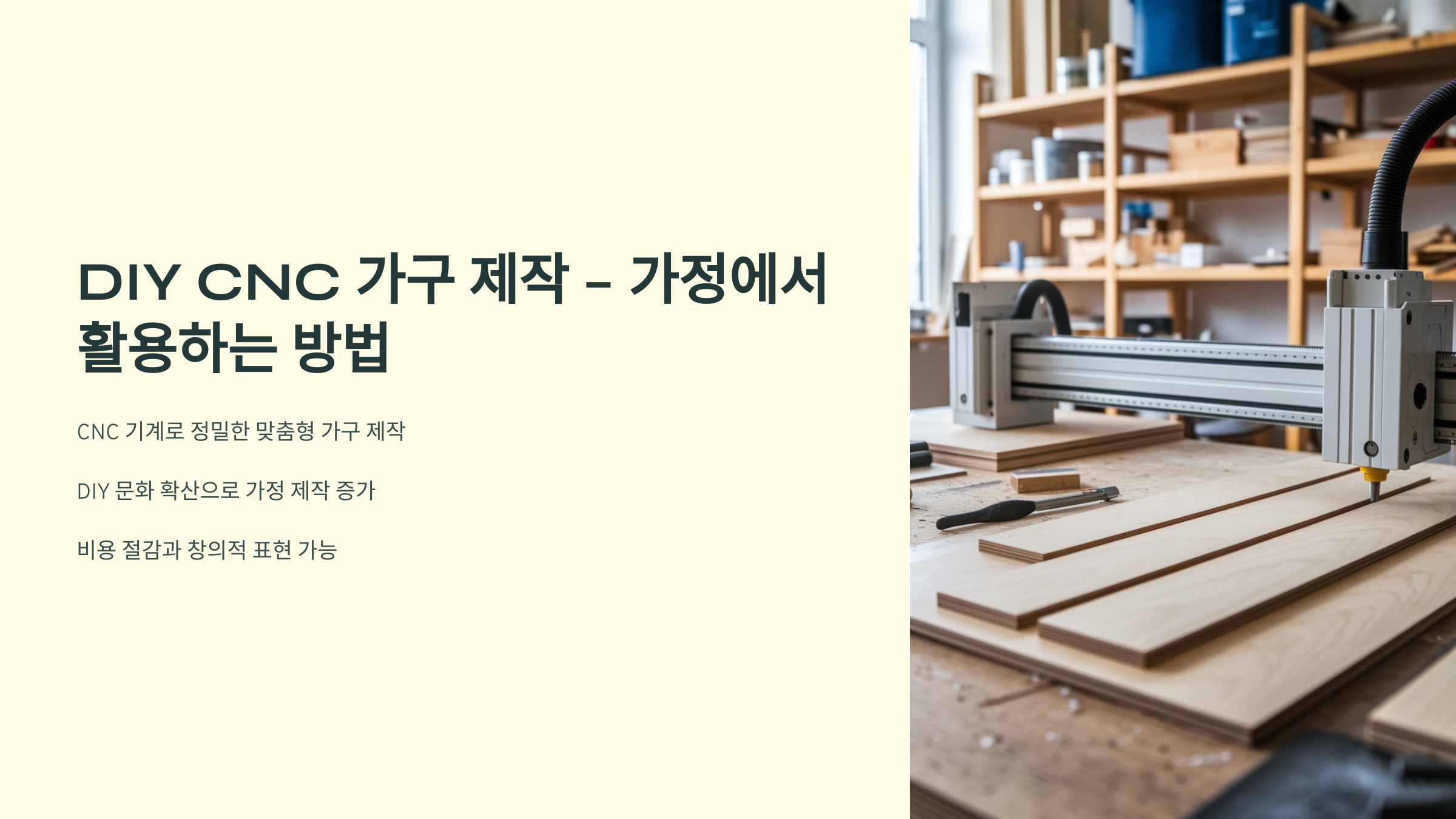 특히, DIY(Do It Yourself) 문화가 확산되면서 가정에서도 CNC 기계를 활용하여 직접 가구를 제작하는 사람들이 늘어나고 있습니다.