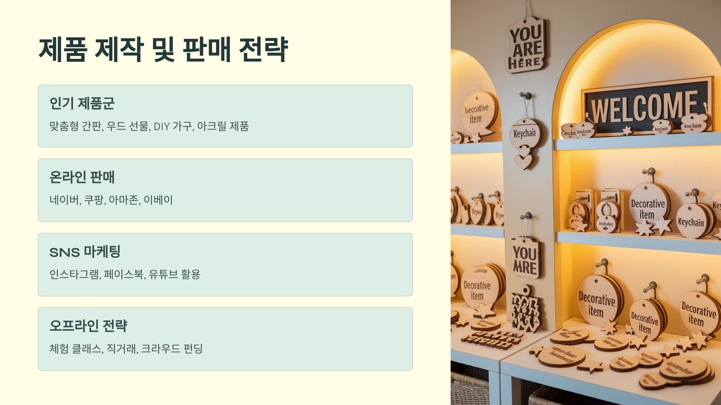 - 오프라인 판매: 공방 내 체험 클래스 운영 및 직거래