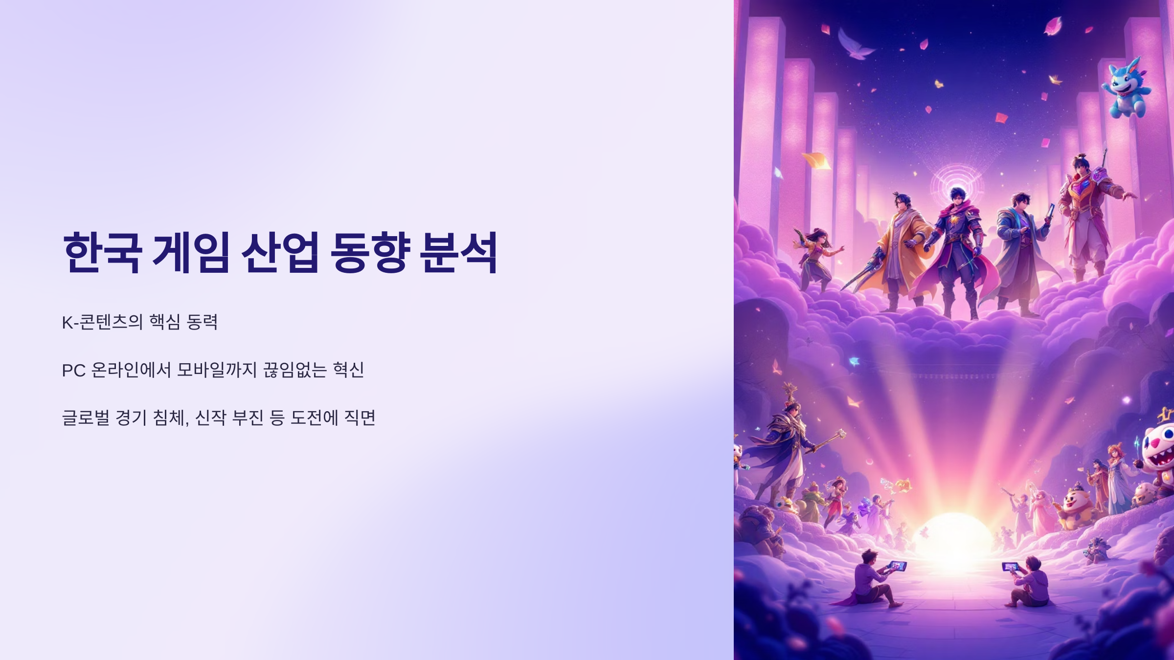 대한민국 게임 산업은 세계적으로도 높은 수준을 자랑하며, 매년 독창적이고 완성도 높은 국산 게임들이 출시되어 게이머들의 마음을 사로잡고 있습니다. 화려한 그래픽과 탄탄한 스토리, 그리고 한국적인 감성이 녹아든 K-게임들은 국내뿐만 아니라 해외에서도 큰 사랑을 받고 있습니다. 하지만 너무나 많은 게임들 속에서 어떤 게임을 선택해야 할지 고민될 때가 많습니다. 그래서 준비했습니다! 다양한 장르를 아우르며, 꼭 한번 플레이해봐야 할 매력적인 국산 게임들을 엄선하여 추천 리스트를 구성했습니다. 이 리스트를 통해 여러분의 취향에 맞는 K-게임의 즐거움을 발견하시길 바랍니다.