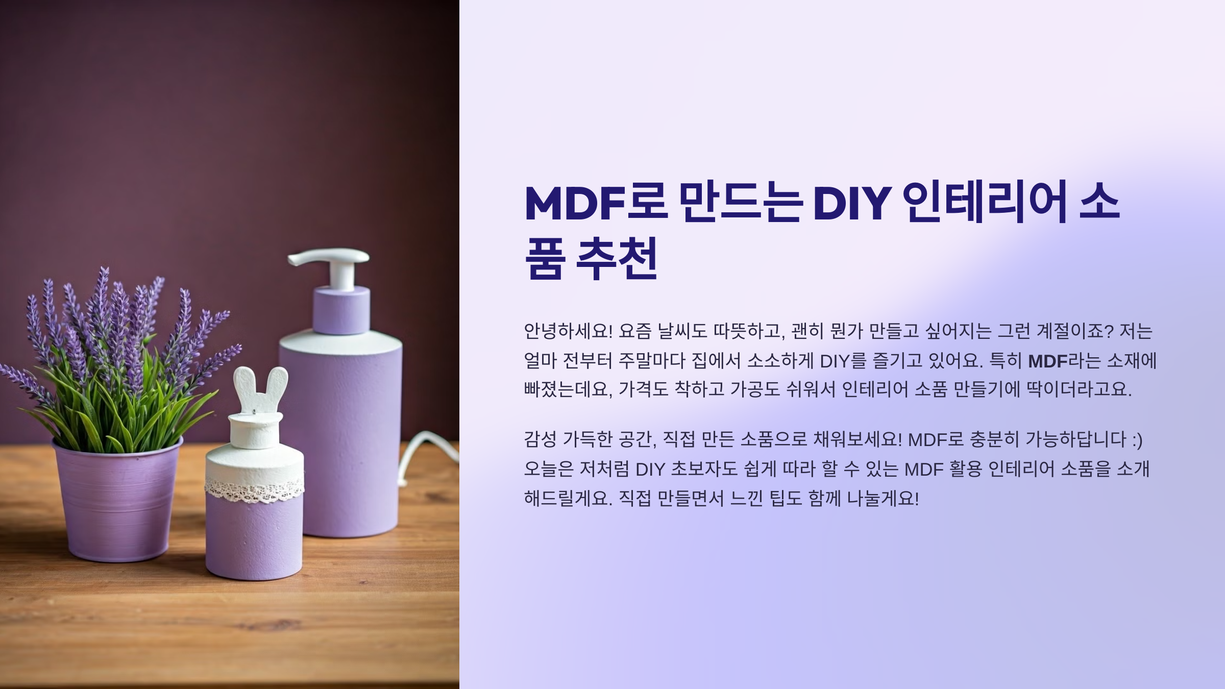 안녕하세요! 요즘 날씨도 따뜻하고, 괜히 뭔가 만들고 싶어지는 그런 계절이죠? 저는 얼마 전부터 주말마다 집에서 소소하게 DIY를 즐기고 있어요. 특히 MDF라는 소재에 빠졌는데요, 가격도 착하고 가공도 쉬워서 인테리어 소품 만들기에 딱이더라고요. 그래서 오늘은 저처럼 DIY 초보자도 쉽게 따라 할 수 있는