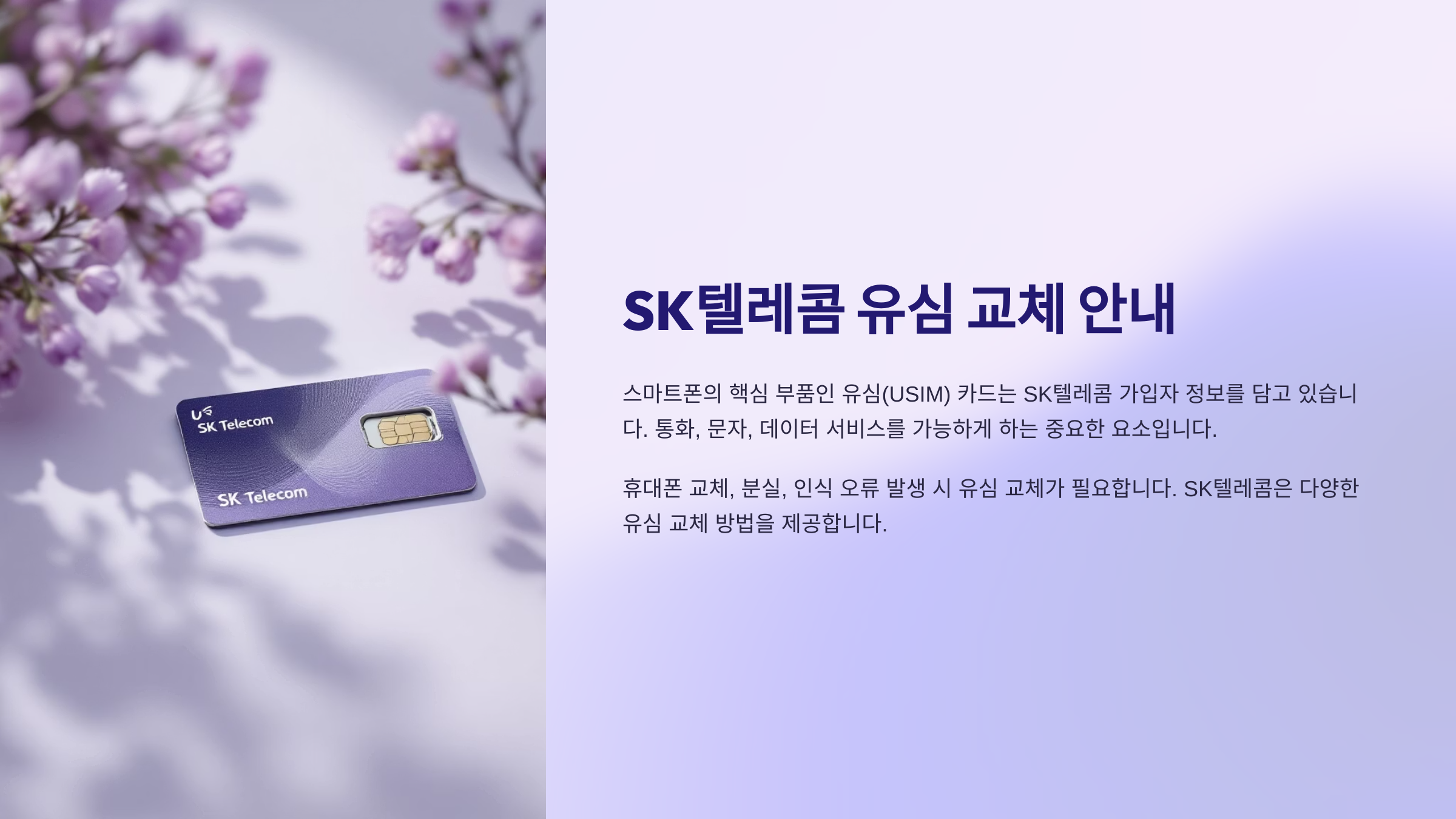 스마트폰을 이용하는 데 있어 작지만 핵심적인 역할을 하는 유심(USIM) 카드. SK텔레콤 가입자 정보를 담아 통화, 문자, 데이터 서비스를 가능하게 하는 중요한 부품입니다. 평소에는 잘 인식하지 못하지만, 휴대폰을 바꾸거나 분실했을 때, 혹은 갑작스러운 인식 오류가 발생했을 때 유심 교체는 필수적인 절차가 됩니다. 다소 번거롭게 느껴질 수 있지만, SK텔레콤은 고객들이 이러한 상황에서 겪는 불편을 최소화하고 원활하게 서비스를 이어갈 수 있도록 다양한 유심 교체 방법을 제공하고 있습니다. 어떤 경우에 유심 교체가 필요하며, 어떻게 진행해야 하는지 자세히 알아보겠습니다.