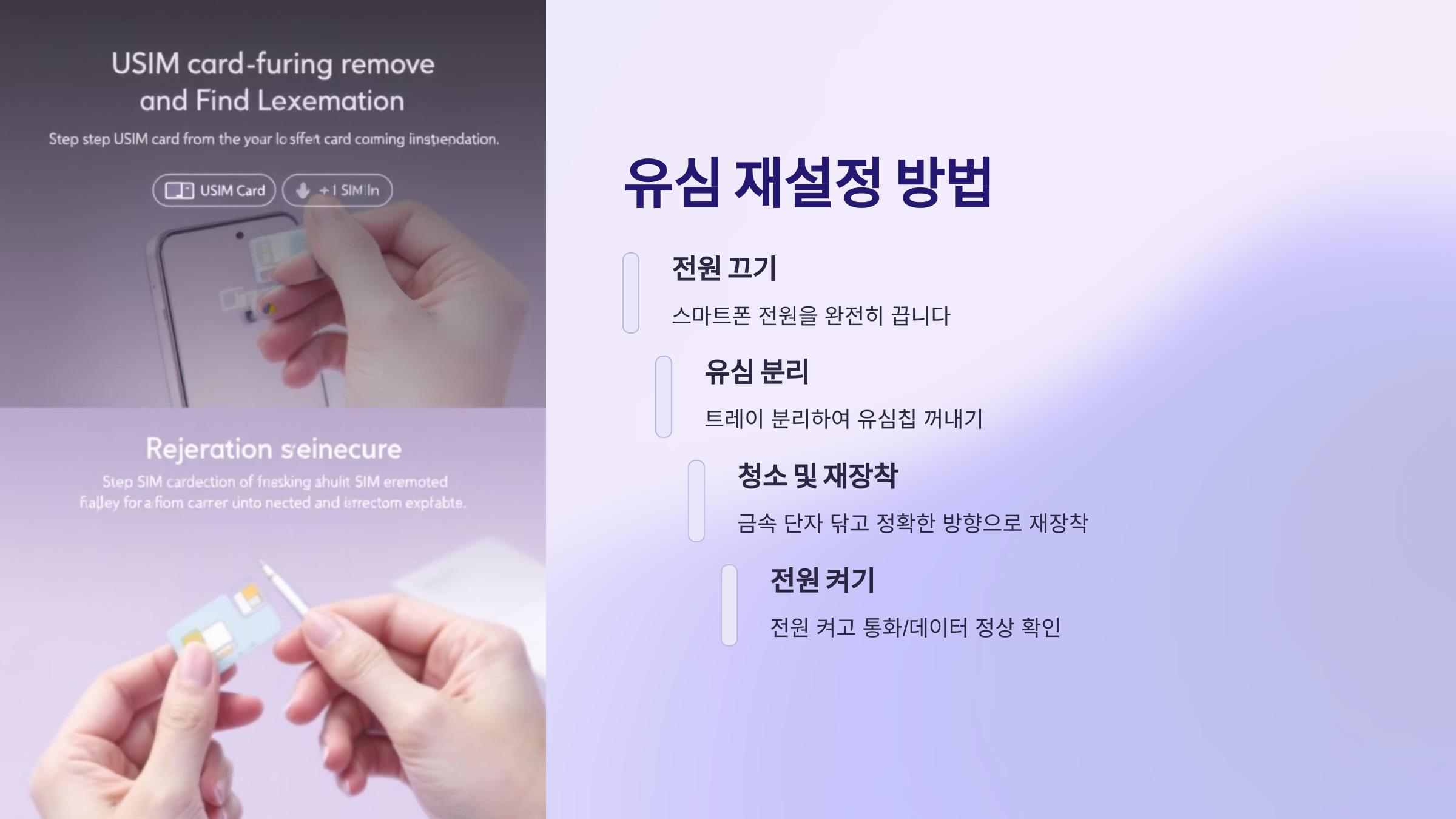 - 유심 재설정 방법 (일반적인 스마트폰 기준):