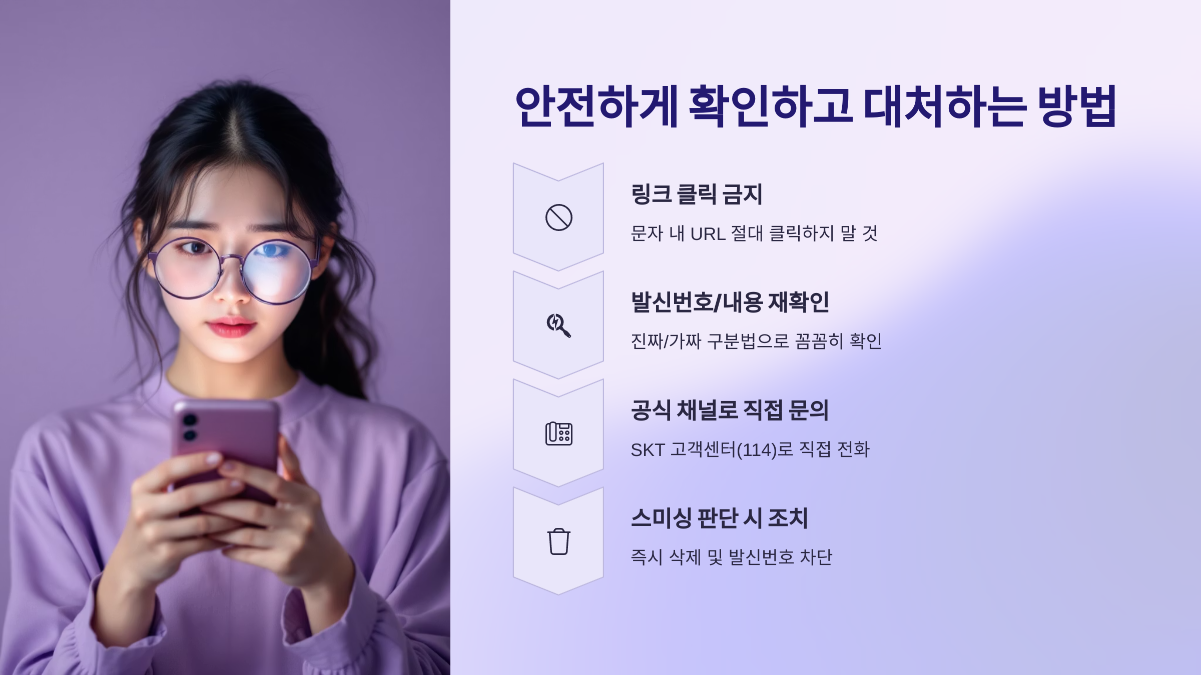 가장 중요한 원칙: 조금이라도 의심스러우면 절대 문자에 포함된 링크를 클릭하거나 정보를 입력하지 마세요!