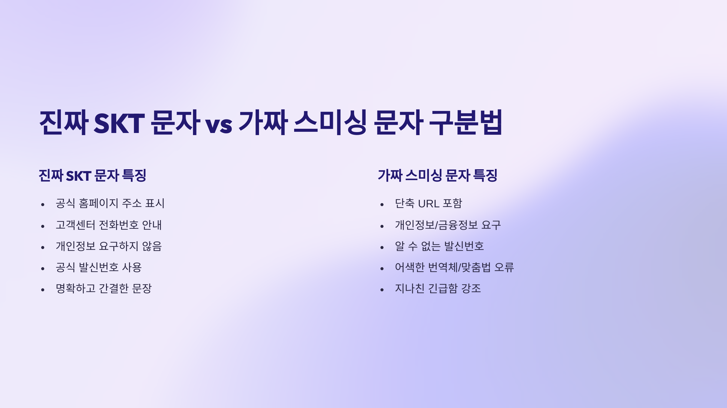 2. 진짜 SKT 문자 vs 가짜 스미싱 문자, 결정적인 구분법은?