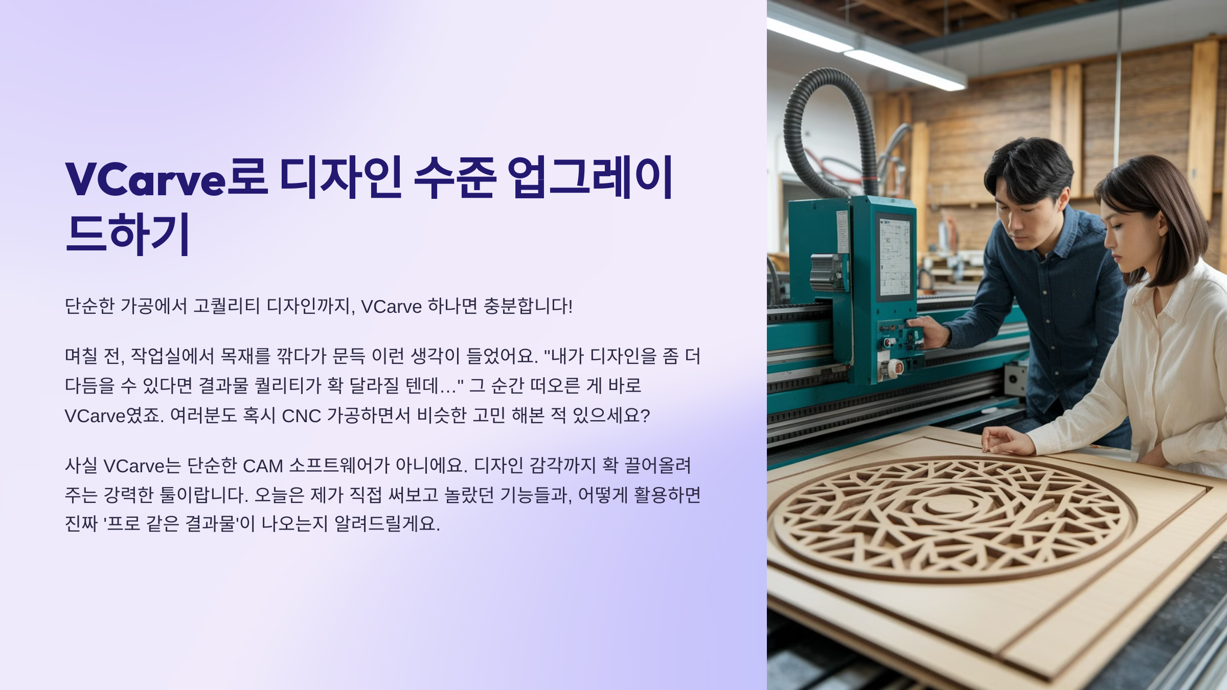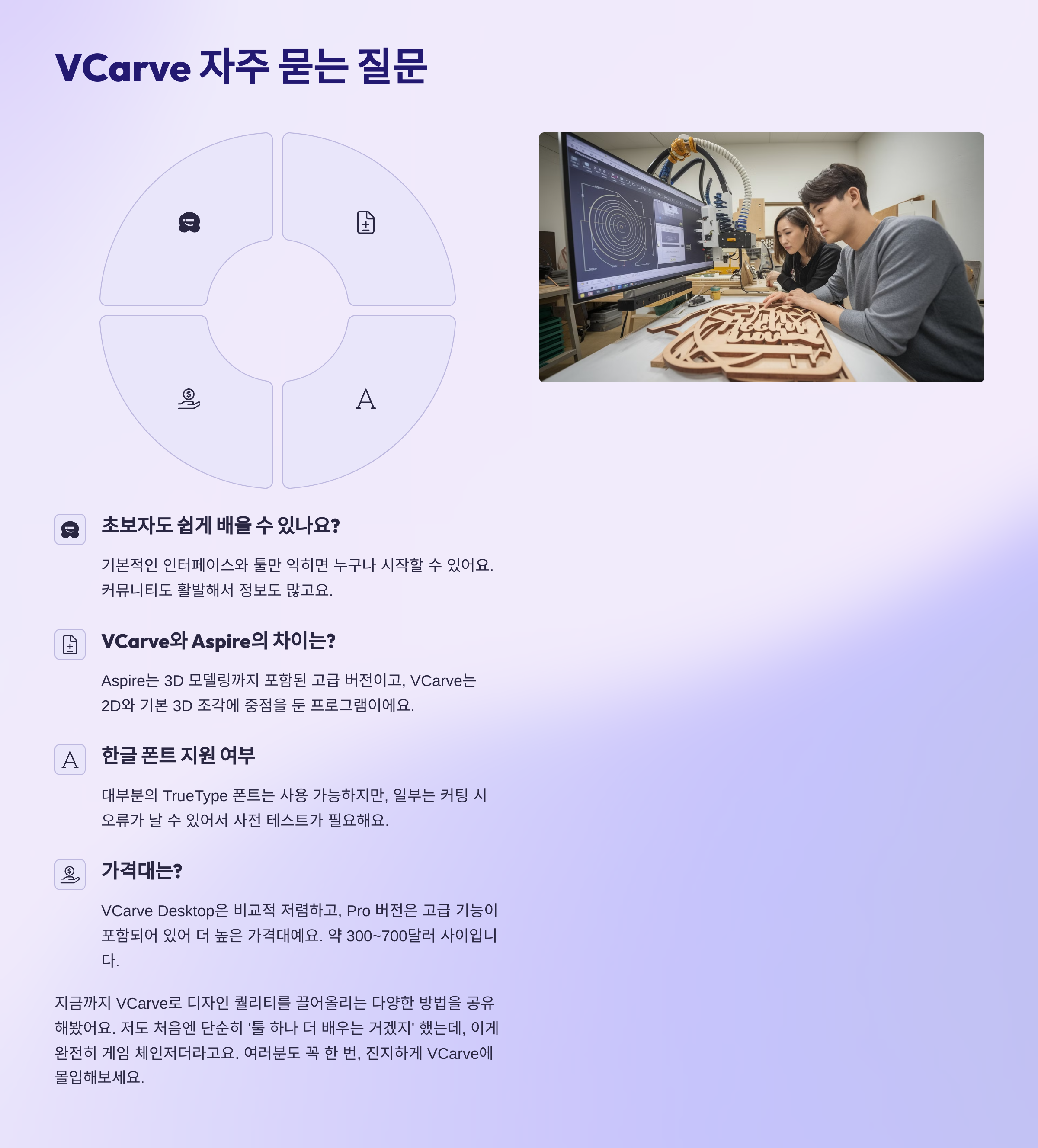 며칠 전, 작업실에서 목재를 깎다가 문득 이런 생각이 들었어요. "내가 디자인을 좀 더 다듬을 수 있다면 결과물 퀄리티가 확 달라질 텐데…" 그 순간 떠오른 게 바로 VCarve였죠. 여러분도 혹시 CNC 가공하면서 비슷한 고민 해본 적 있으세요? 사실 VCarve는 단순한 CAM 소프트웨어가 아니에요. 디자인 감각까지 확 끌어올려주는 강력한 툴이랍니다. 오늘은 제가 직접 써보고 놀랐던 기능들과, 어떻게 활용하면 진짜 '프로 같은 결과물'이 나오는지 알려드릴게요.